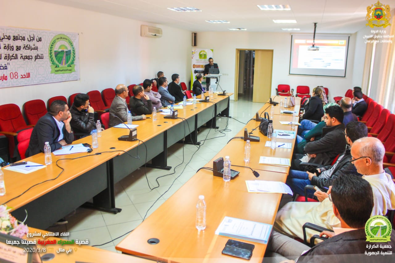 تحت شعار من أجل مجتمع مدني مواطن فاعل وشريك في الترافع عن الصحراء المغربية،نظمت جمعية الكرازة للتنمية الجهوية اللقاء الافتتاحي لمشروع “قضية الصحراء المغربية قضيتنا جميعا”موضوع الشراكة المبرمة مع وزارة الدولة المكلفة بحقوق الإنسان والعلاقات مع البرلمان وذلك يوم الأحد 8مارس2020 بمقر الغرفة الجهوية للفلاحة،
